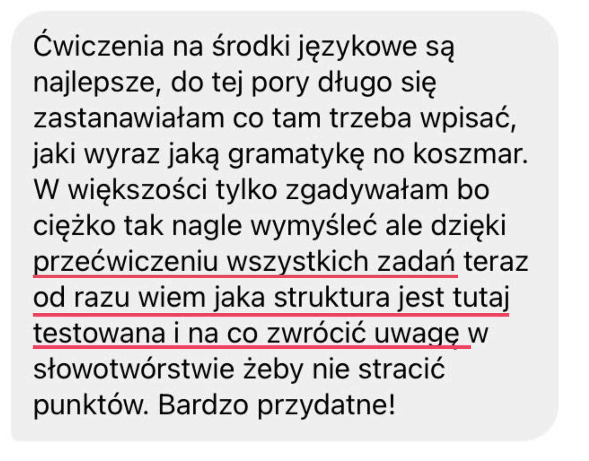 🎯 Zrozumiesz gramatykę i nauczysz się jej używać tak, by zdobywać punkty – zamiast wkuwać regułki, opanujesz praktyczne schematy, które dają 12–14/14 pkt w środkach językowych (zamiast średnio 6)