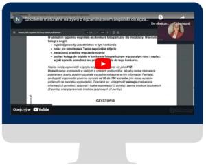 Raz w miesiącu spotykamy się na dodatkowych zajęciach online dla chętnych, na których praktycznie pracujemy nad gramatyką i zadaniami egzaminacyjnymi. Zajęcia trwają 60 min, kończą się sesją Q&A, na której uczniowie moją zadawać pytania.