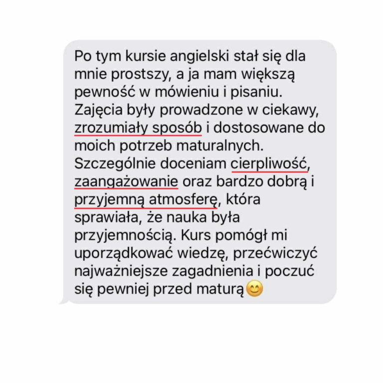 Uczestniczenie w zajęciach na żywo pomaga utrzymać regularność i motywację w przygotowaniach do matury, co jest potężnym wyzwaniem w pracy samodzielnej.
