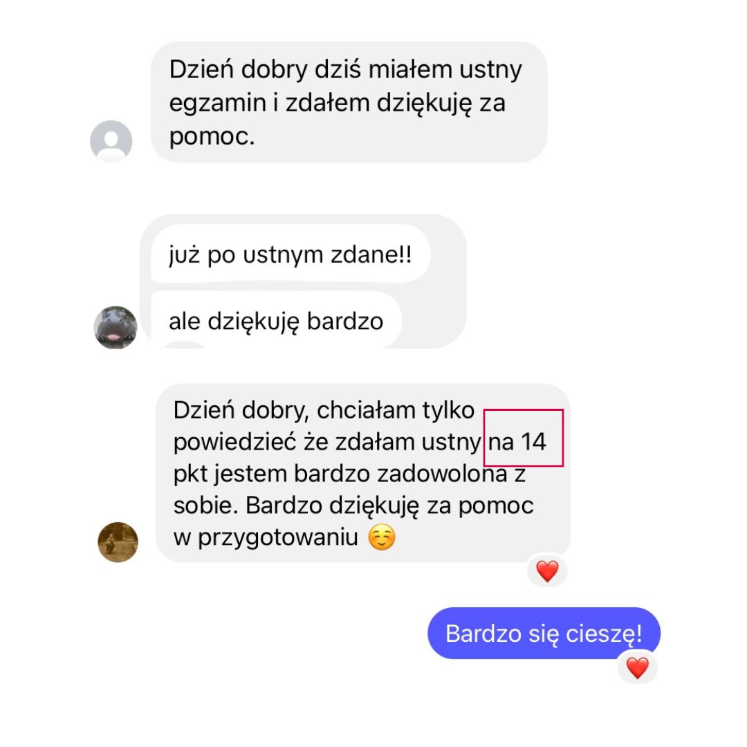 Zależy mi na tym, żeby Ci pomóc zdać maturę z zadowalającym Cię wynikiem.