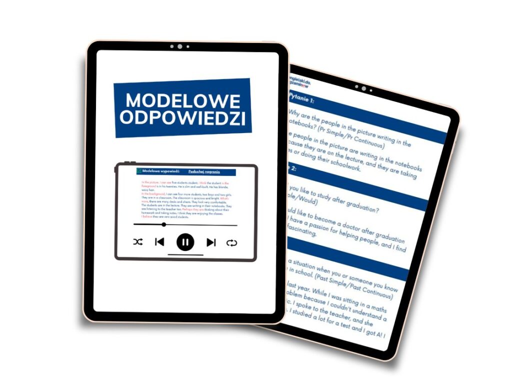 + ćwiczenia ustne i modelowe odpowiedzi audio, które możesz odsłuchać tyle razy, ile chcesz