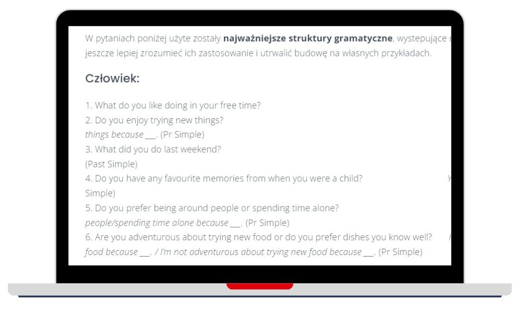 ✔️ Testowane pytania do rozmowy wstępnej i zadań z 14 obowiązujących tematów wraz z szablonami jak tworzyć swoje wypowiedzi