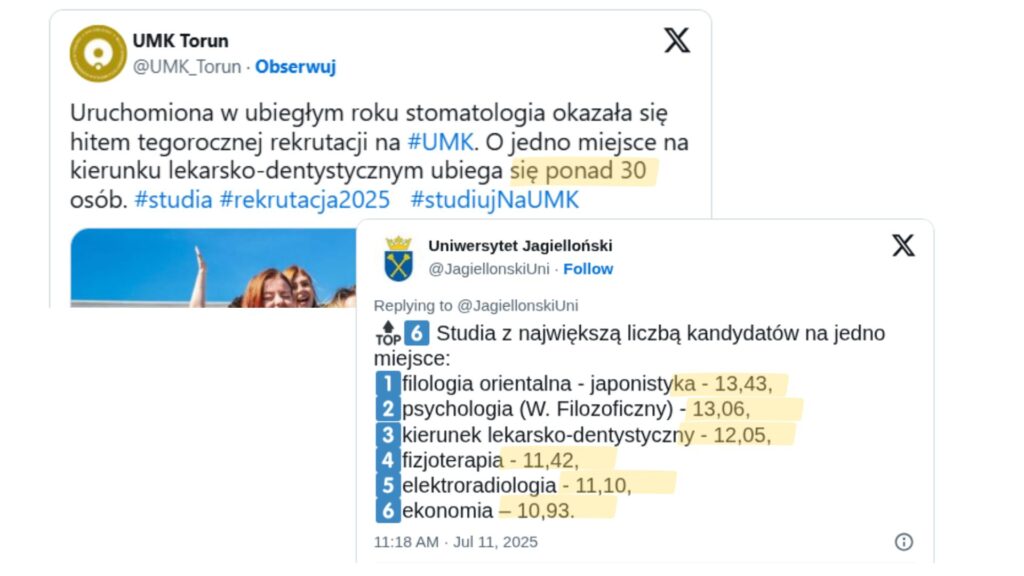 Do zdobycia faktycznego miejsca i pokonania większości kandydatów na ten kierunek zabrakłoby Ci aż 22%.